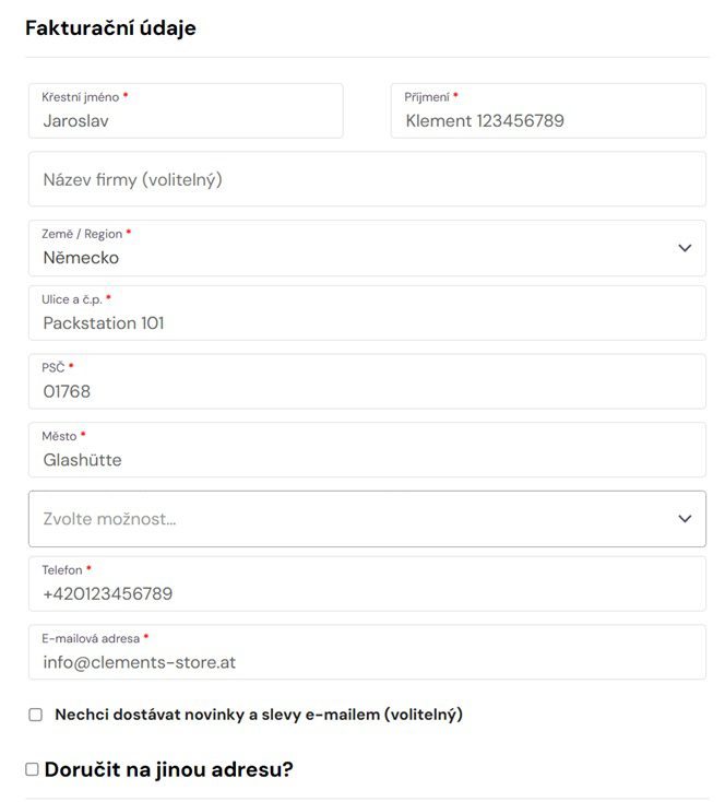 - Nezapomeň nastavit správnou adresu dodání v Rakousku/Německu.