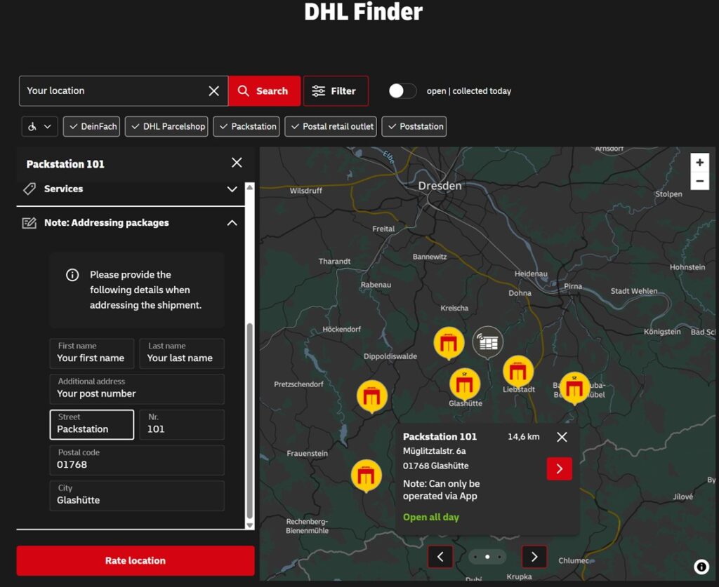 Všechny Packstation s jejich umístěními a adresami najdete v Postfinderu.