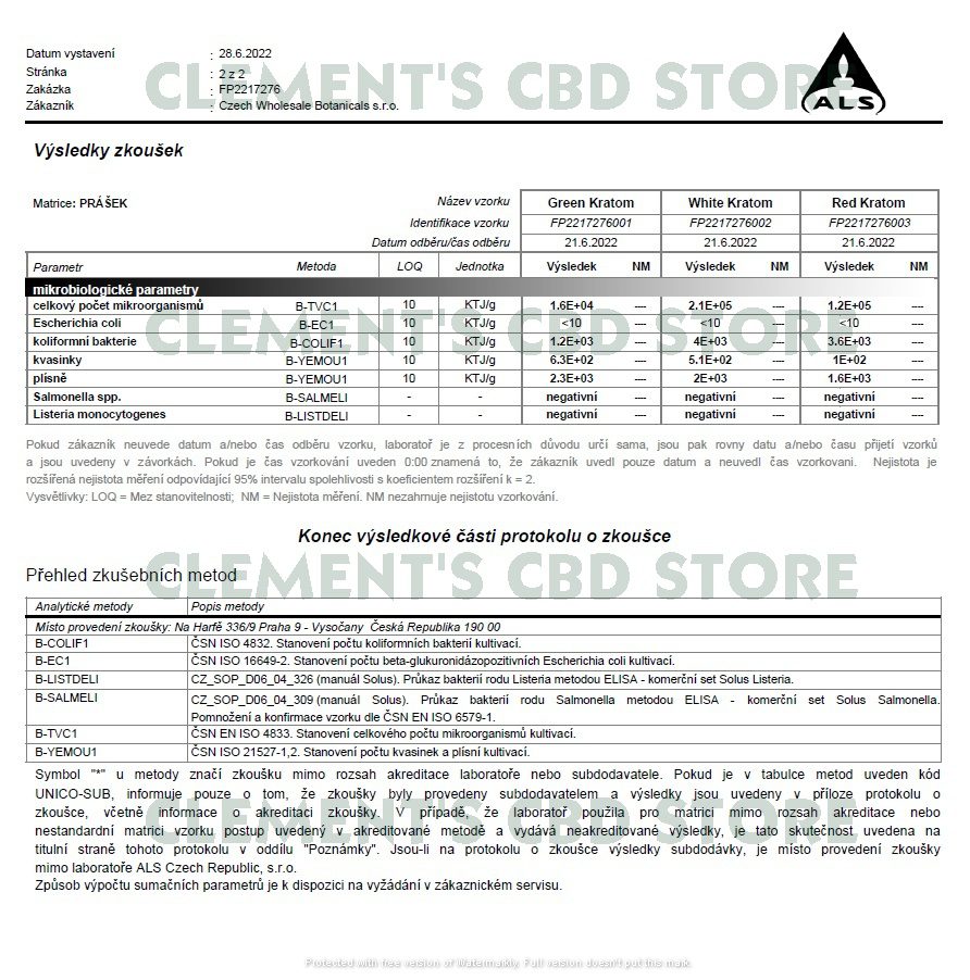 Při výběru dodavatele je pro nás vždy zásadní kontrola kvality – prvotně na papíře a poté i v praxi na „vlastní oči“. Pokud nám potenciální dodavatel není schopen dodat aktuální laboratorní testy s jeho jménem v originálním souboru, tak se s ním dále ani nezabýváme. Po dovozu samotného kratomu z Indonésie si prášek sami testujeme v českých laboratořích. Na laboratorních testech můžete vidět jméno zadavatele Czech Wholesale Botanicals s.r.o. – to byla moje druhá česká firma, přes kterou jsem prodával kratom velkoobchodně přes regulací a nechali jsme si testy dělat právě na CWB s.r.o. skrz odpočet DPH.