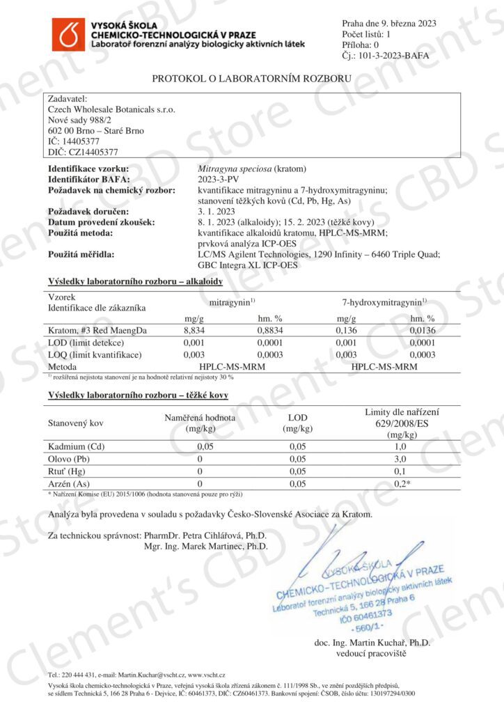 RED MAENG DA (ÚNOR, 2024) - ALKALOIDY A TĚŽKÉ KOVY