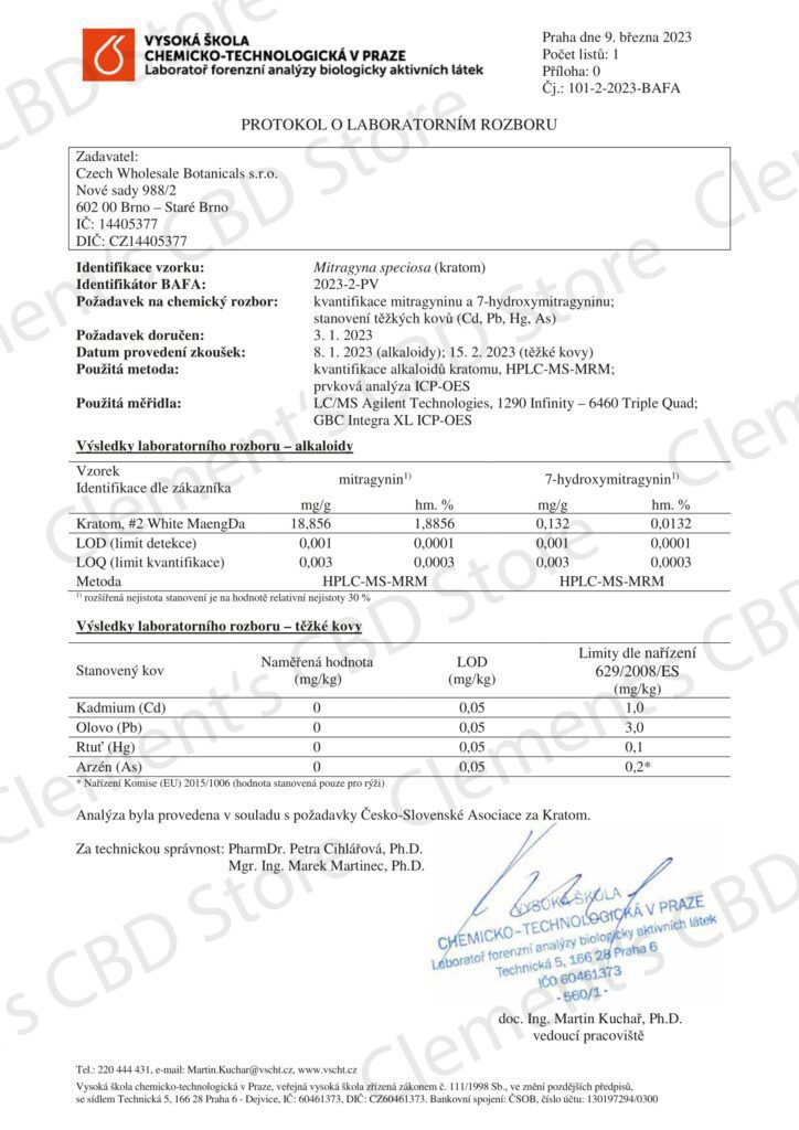 GREEN MAENG DA (BŘEZEN, 2023) - ALKALOIDY A TĚŽKÉ KOVY