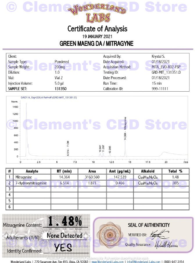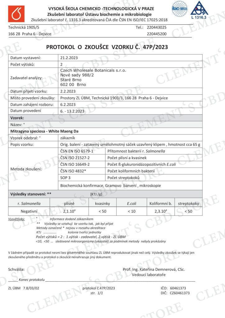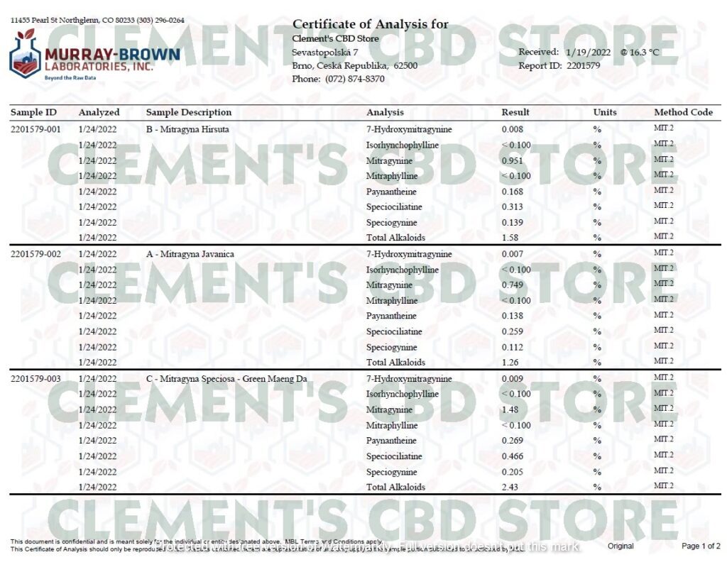 GREEN MAENG DA (LEDEN, 2021) - ALKALOIDY